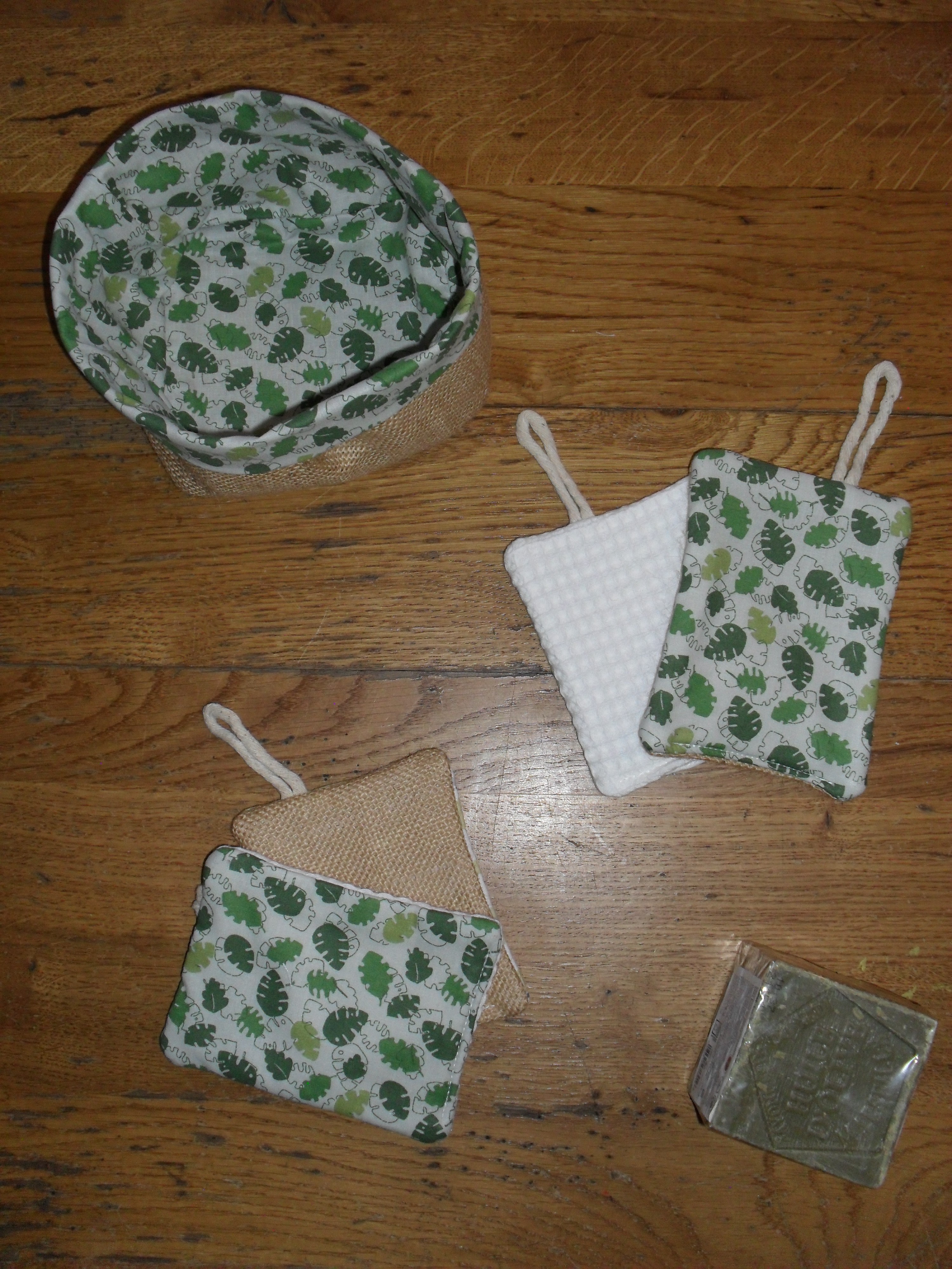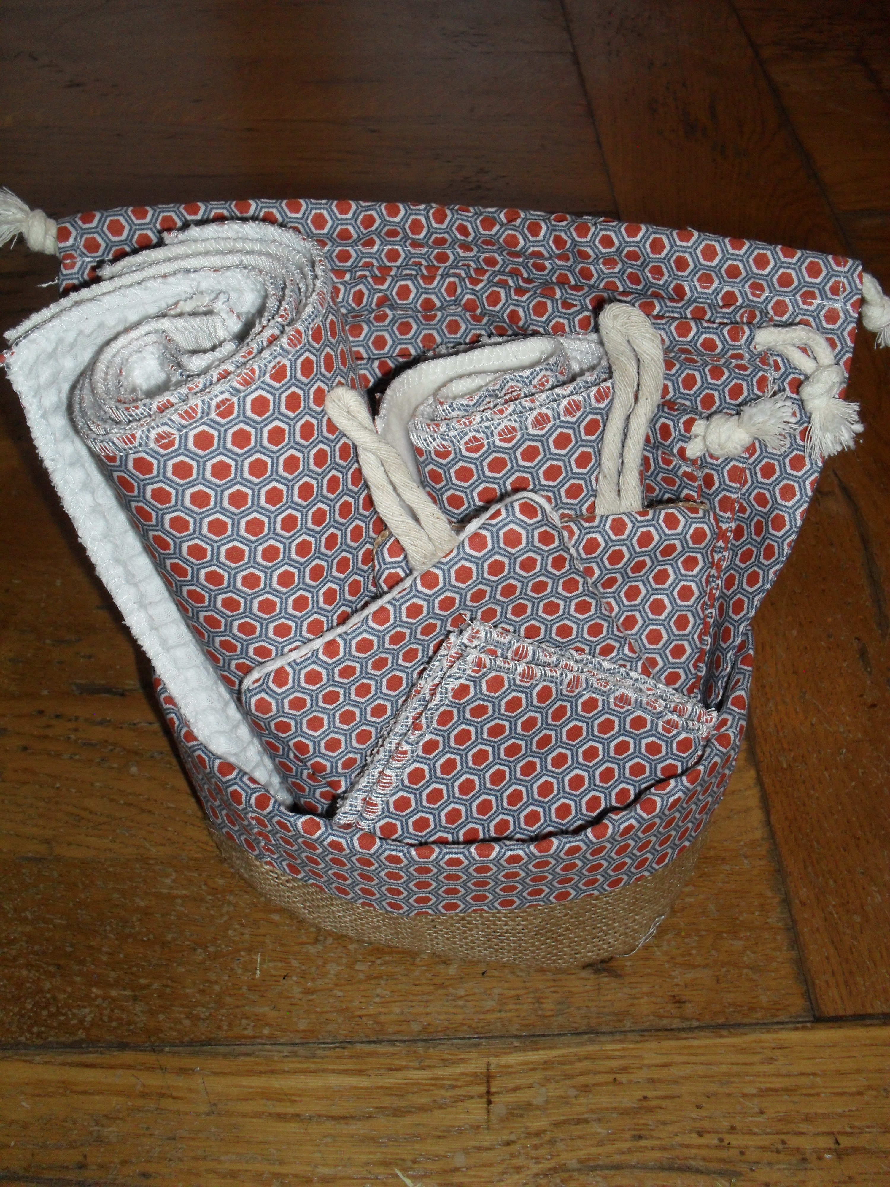 6  debarbouillettes env 13cm/17cm, doublées coton oeko-tex, dont: