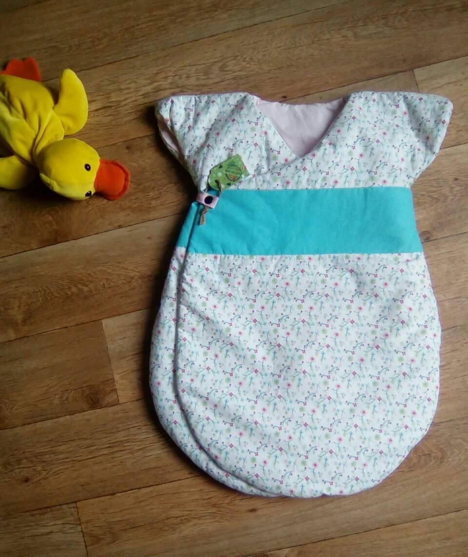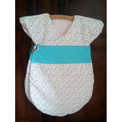 Très jolie gigoteuse d'inspiration japonaise. Maxi confort et chaude grâce à ses épaules couvertes et ses 2 pans supperposés sur le devant.