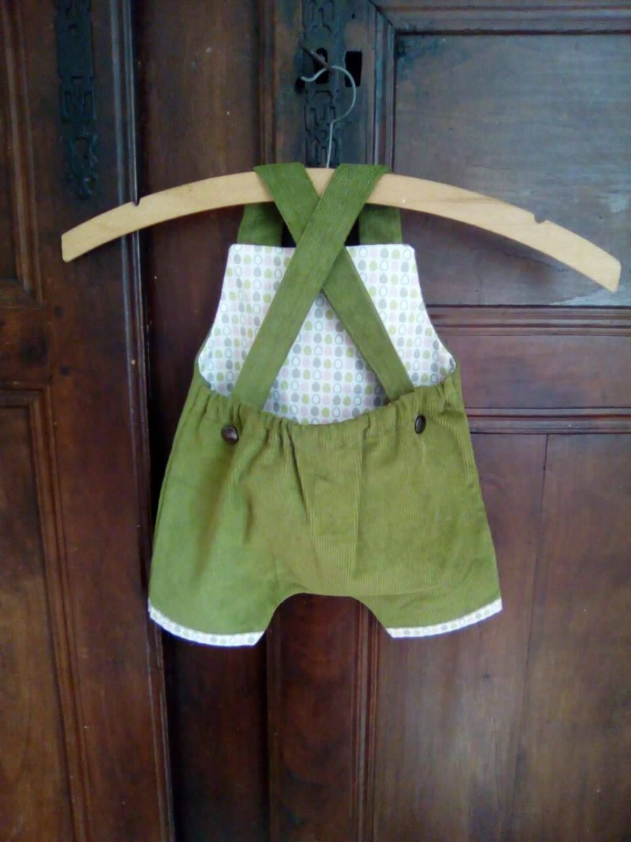 La salopette s'attache à l'arrière grâce à une pression en métal.