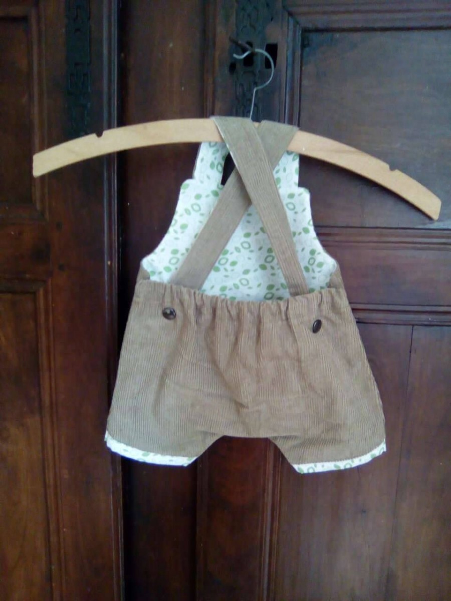 La salopette s'attache à l'arrière grâce à une pression en métal.