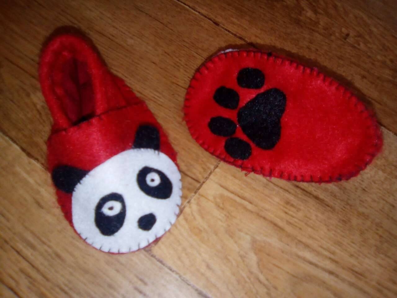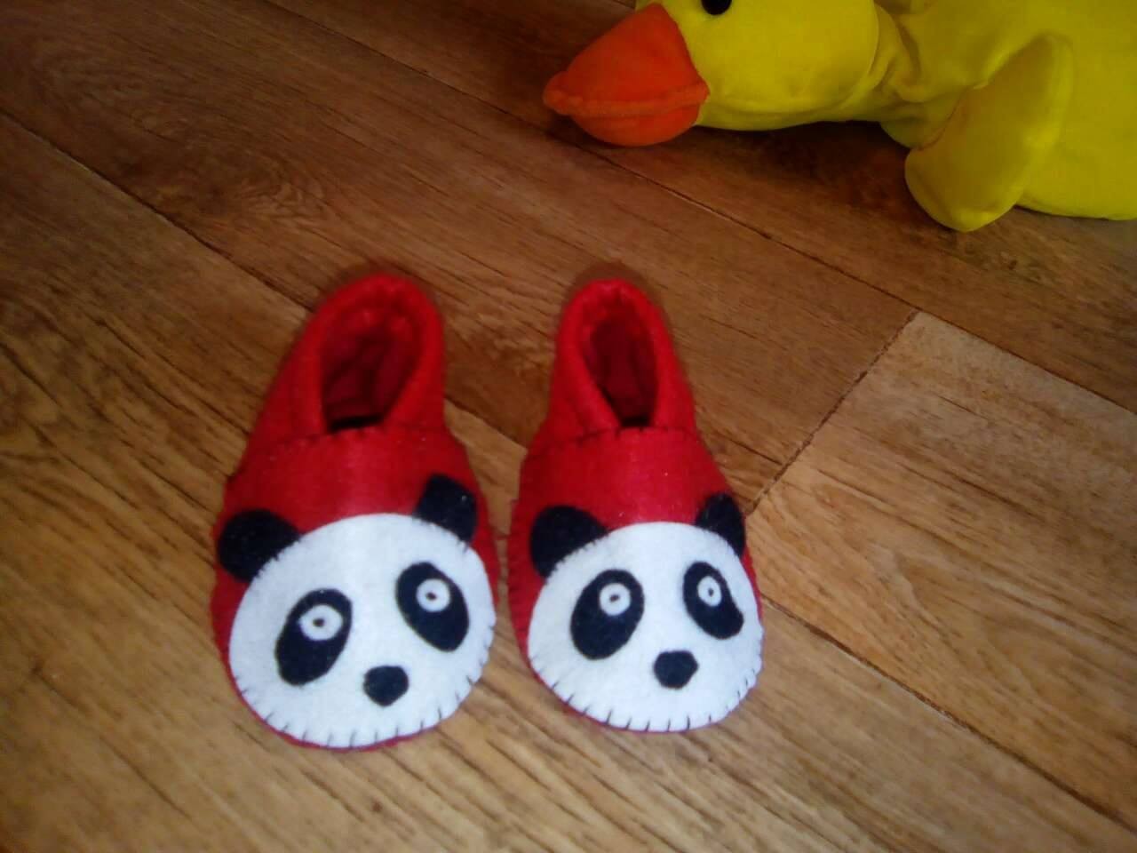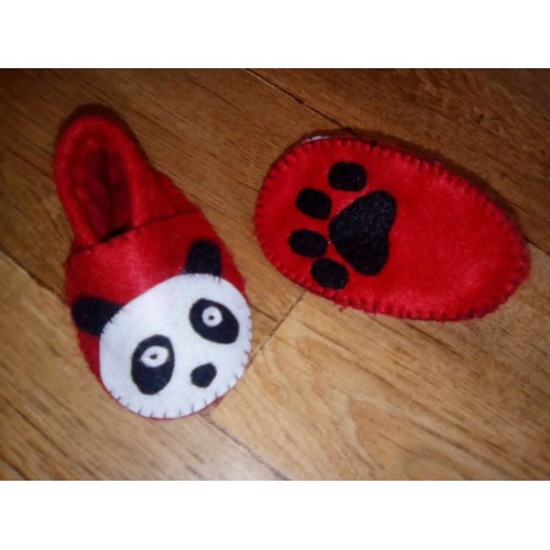 Petits chaussons en feutrine, entièrement doublés en coton pour plus de douceur et de chaleur.