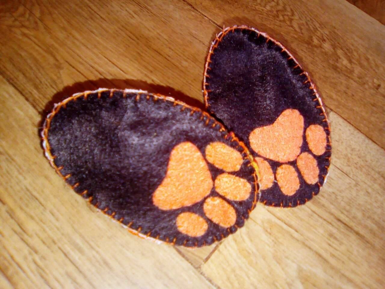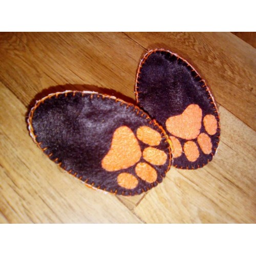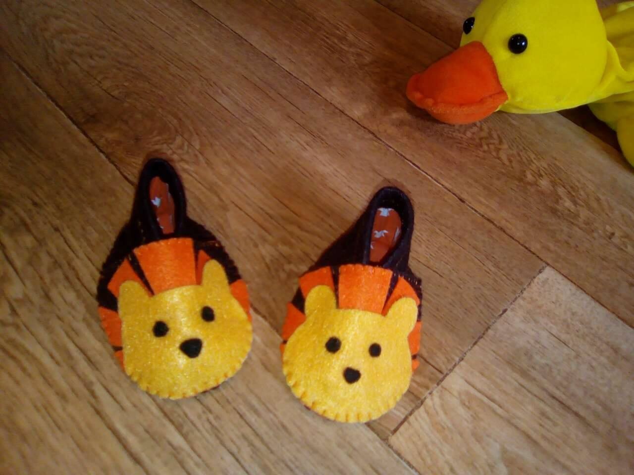 Petits chaussons en feutrine, entièrement doublés en coton pour plus de douceur et de chaleur.