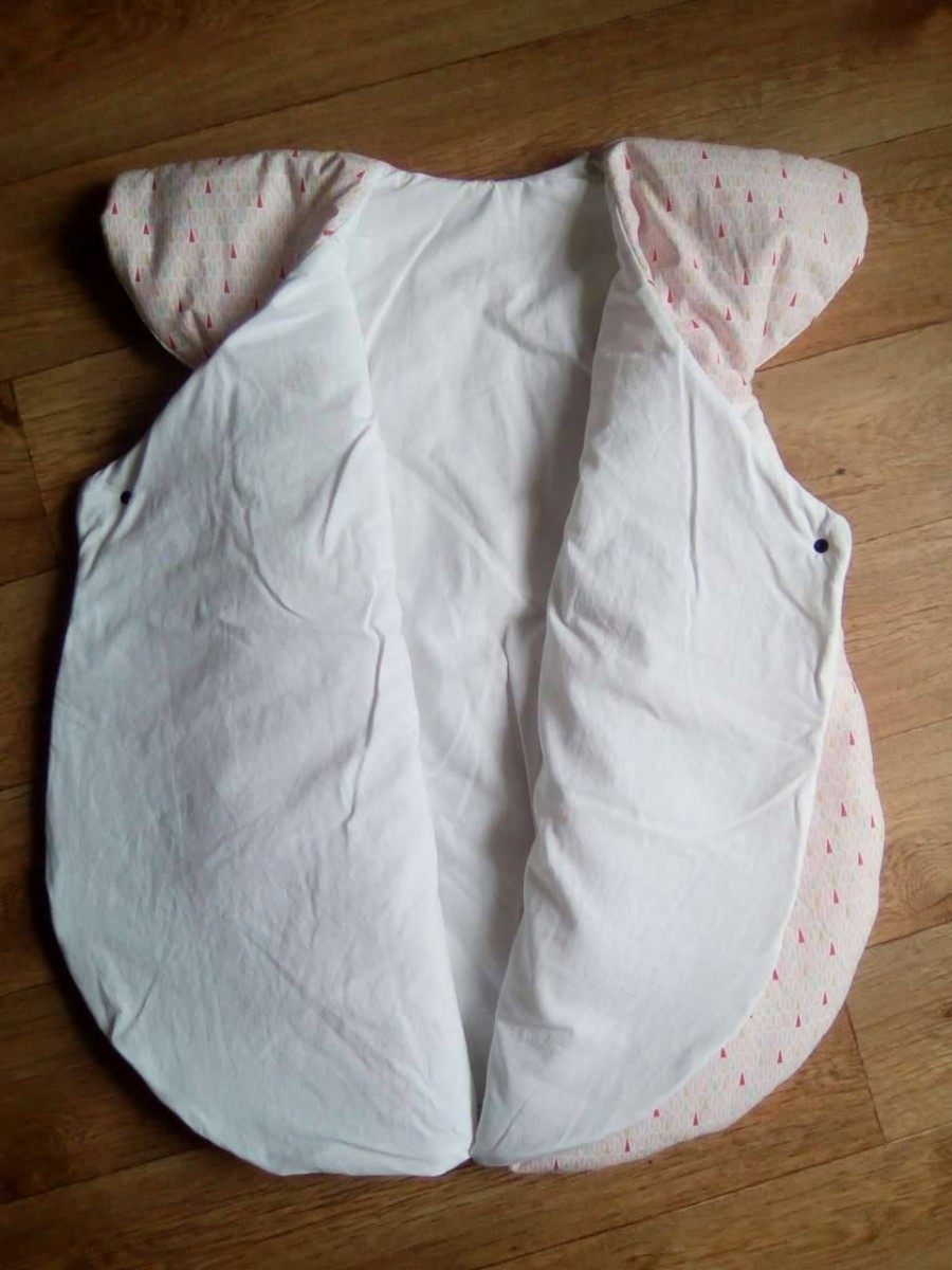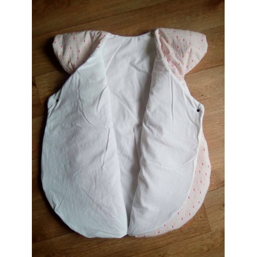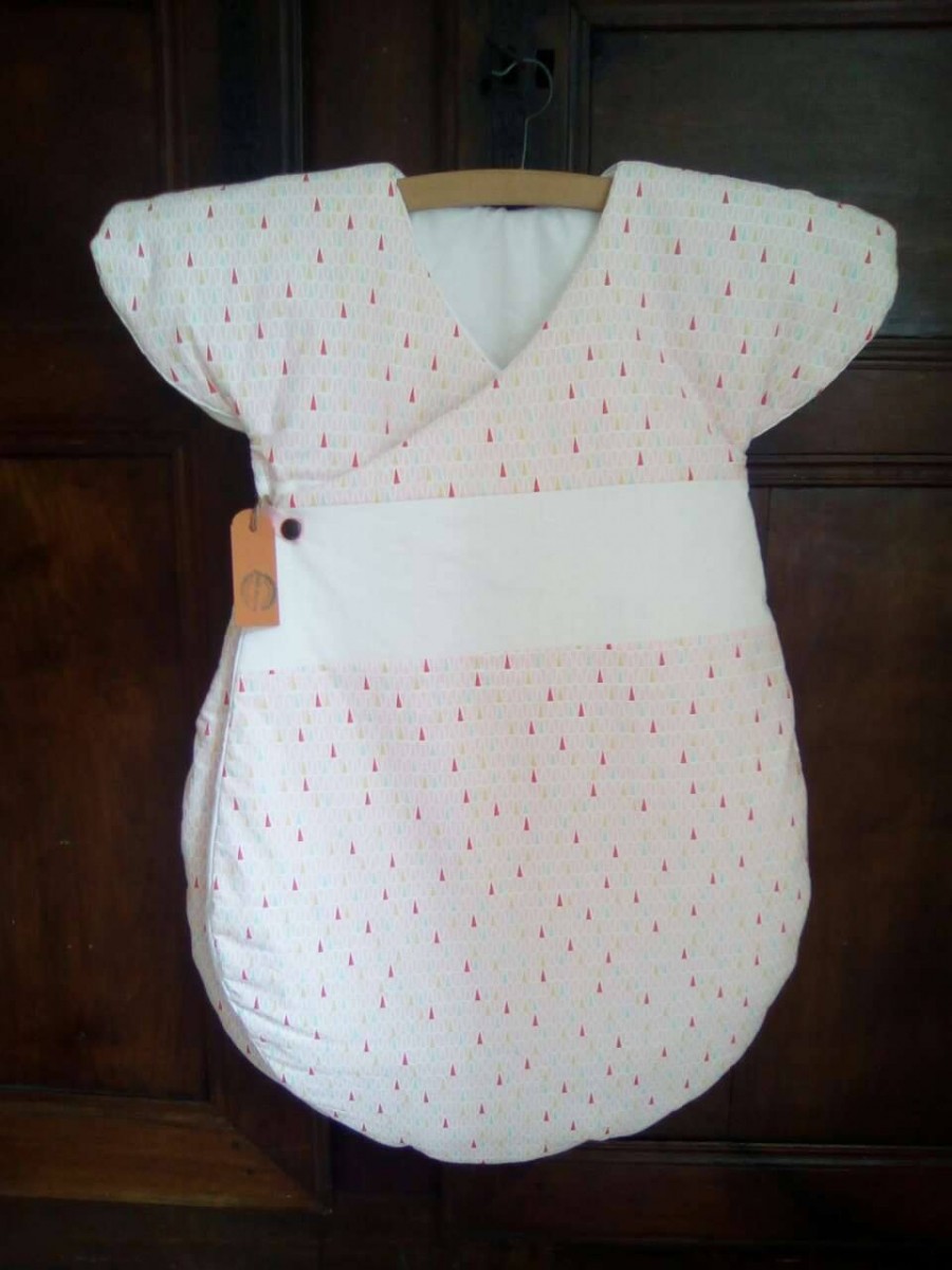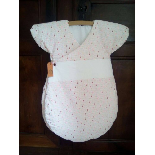 Très jolie gigoteuse d'inspiration japonaise. Maxi confort et chaude grâce à ses épaules couvertes et ses 2 pans supperposés sur le devant.