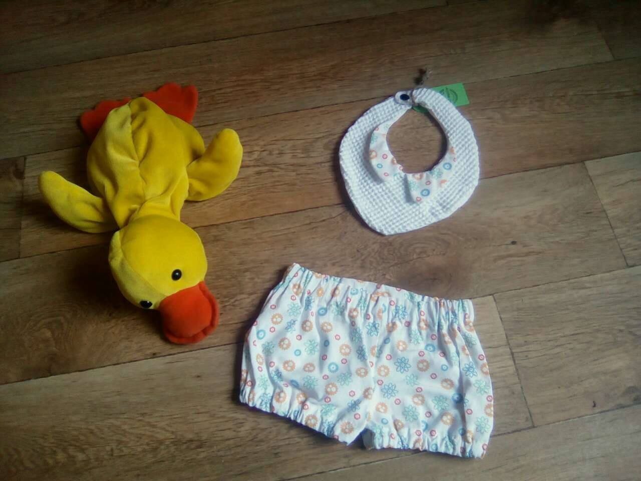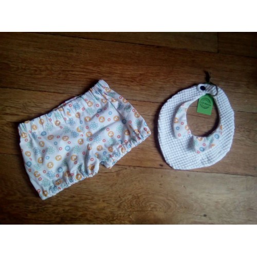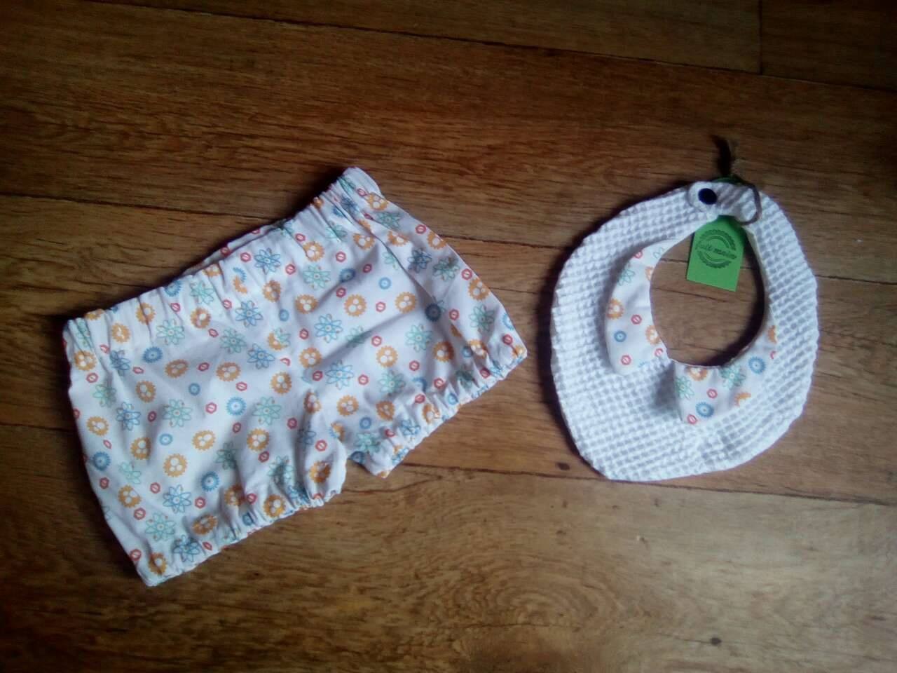 Ensemble bloomer format short assortie au col du bavoirs. Joli ensemble chic !