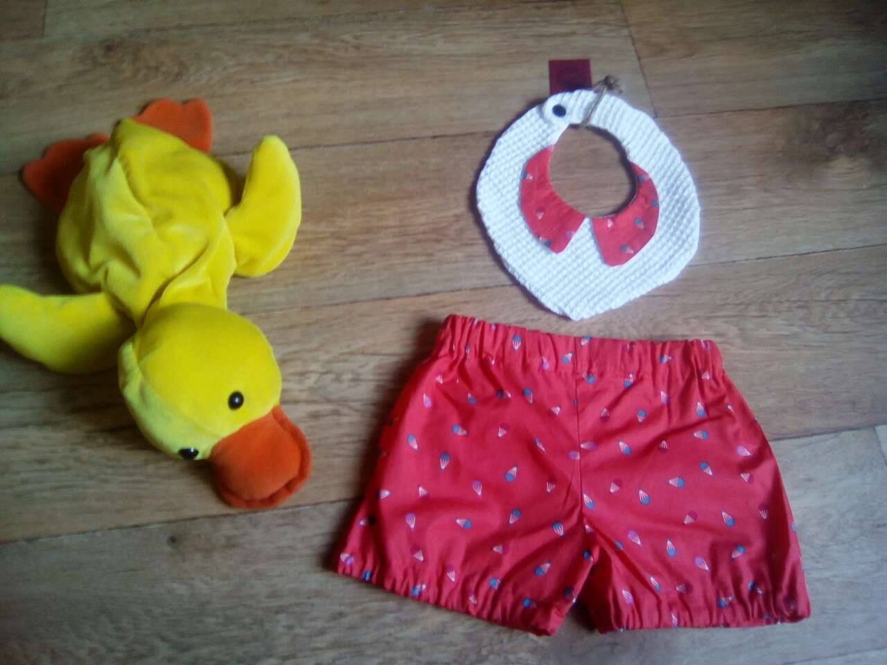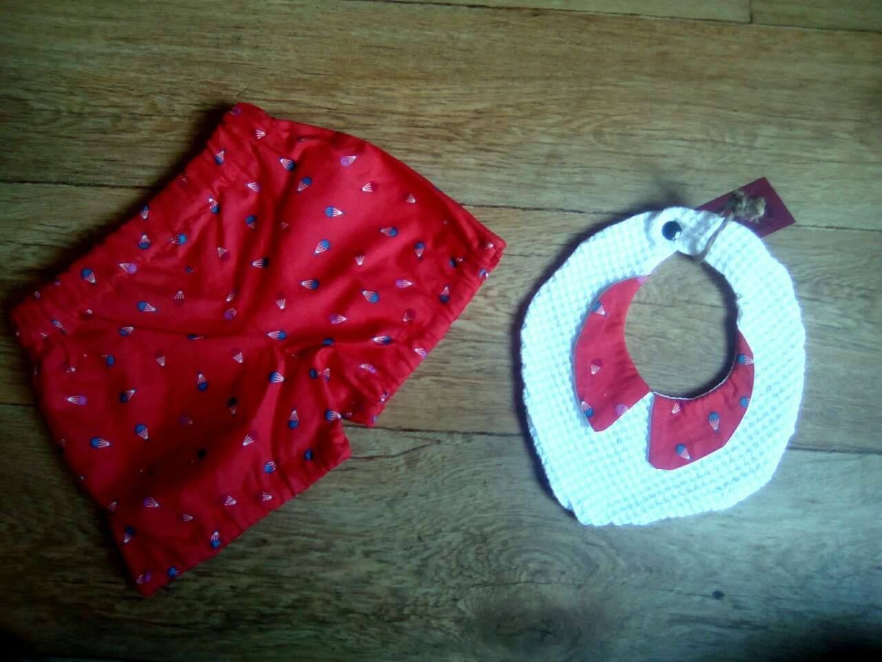 Ensemble bloomer format short assortie au col du bavoirs. Joli ensemble chic !