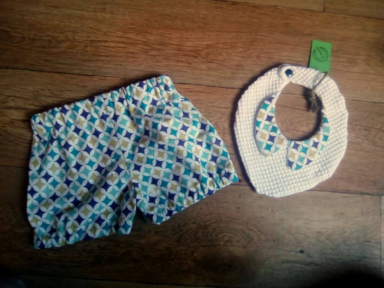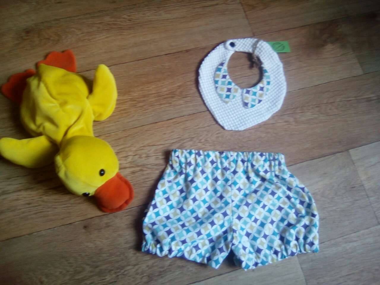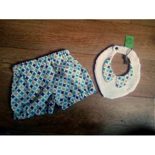 Ensemble bloomer format short assortie au col du bavoirs. Joli ensemble chic !
