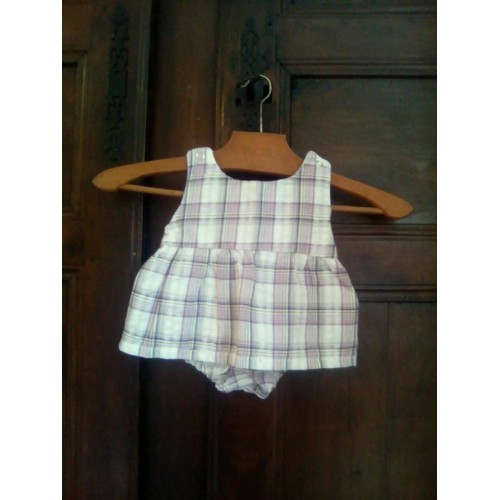 Idéal pour l'été, cet ensemble tunique + bloomer laissera bébé libre de tous mouvements. La tunique est facile à mettre grâce à un boutonnage par pression sur l'arrière ainsi qu'aux épaules. Le bloomer en forme culotte est très élastique afin de s'adapter aux couches de bébé.